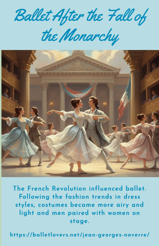 On the other hand, the French Revolution not only transformed the customs and standards of society but also influenced dance. Following the fashion trends in dress styles, costumes became more airy and light and men paired with women on stage.