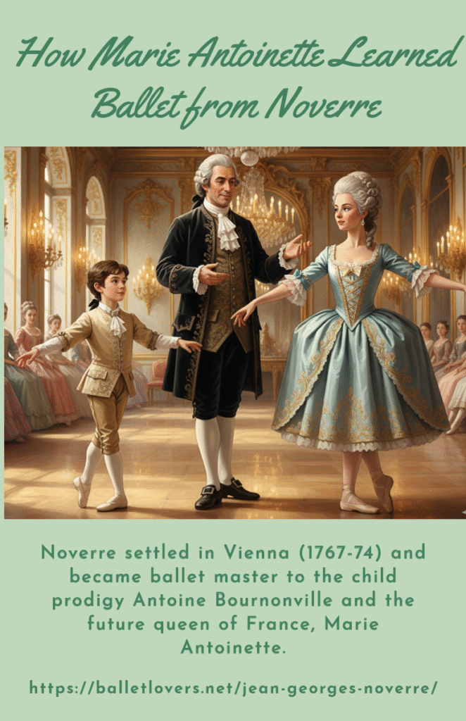 Years later he settled in Vienna (1767-74). There, he collaborated with a friend, the German composer Christoph Gluck. He was experimenting with opera as much as Noverre was with ballet. On the other hand, he was appointed maître de ballet and director of court performances. Also, he was named maître de danse to Empress Maria Theresa and the imperial family. So, he became ballet master to the child prodigy Antoine Bournonville and the future queen of France, Marie Antoinette.